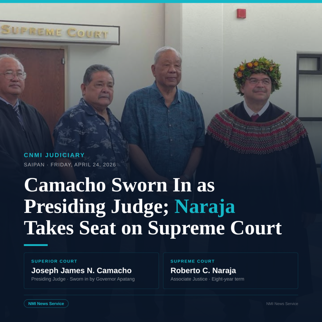 Camacho Sworn In as CNMI Superior Court Presiding Judge; Naraja Takes Seat on Supreme Court