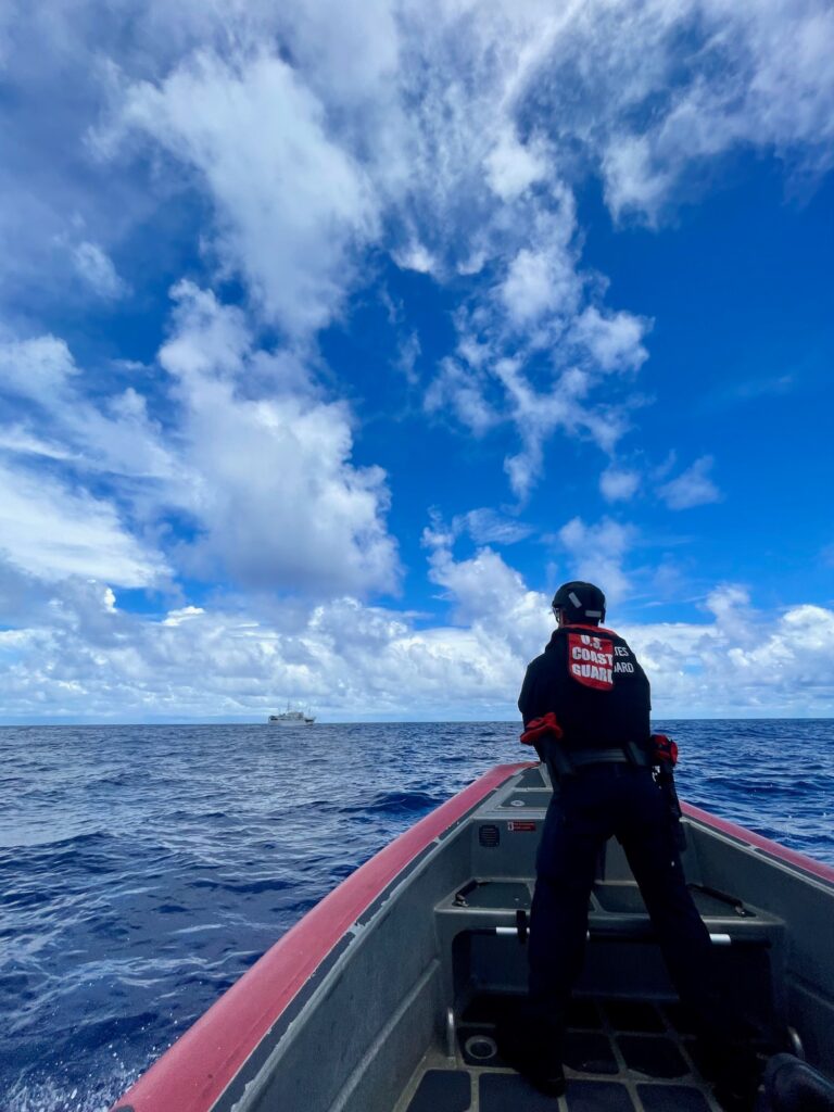 During the mission, the cutter partnered with the Federated States of Micronesia (FSM) National Police Maritime Wing to conduct five bilateral maritime law enforcement boardings of tuna longliners in FSM’s exclusive economic zone. All vessels were found in full compliance. The patrol also supported search-and-rescue readiness and efforts to deter illegal fishing across a vast expanse of ocean.