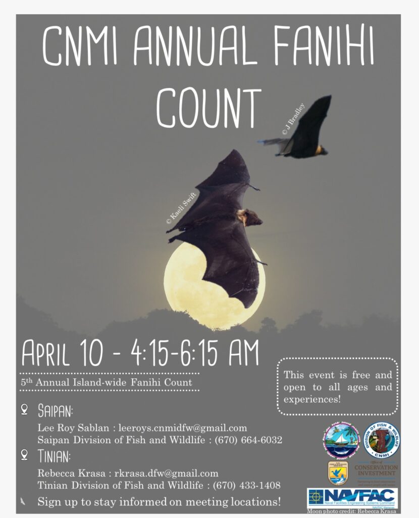 SAIPAN — The 5th Annual Island-wide Fanihi Count takes place Friday, April 10, from 4:15 to 6:15 a.m., with observation sites across Saipan and Tinian. The event is free and open to all ages and experience levels.
