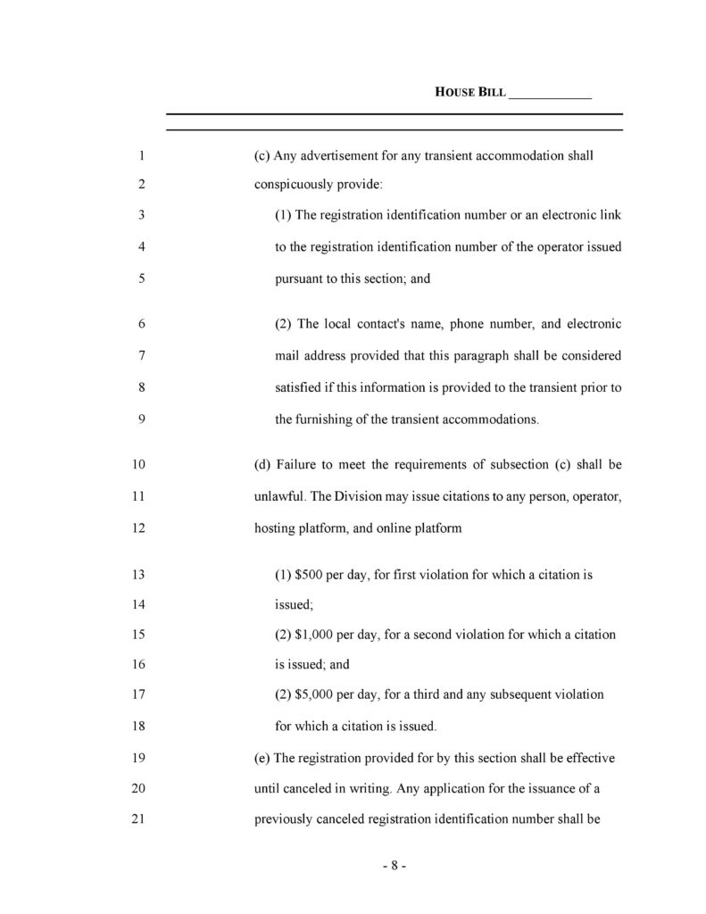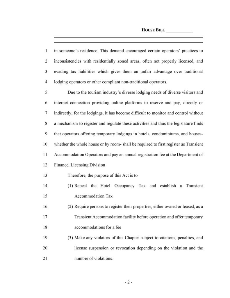 The bill takes aim at what the legislature describes as an uneven playing field. Short-term rental operators, it argues, have proliferated in recent years while often operating without proper licenses, in residentially zoned areas, and without paying taxes, giving them a cost advantage over traditional lodging operators who do comply.