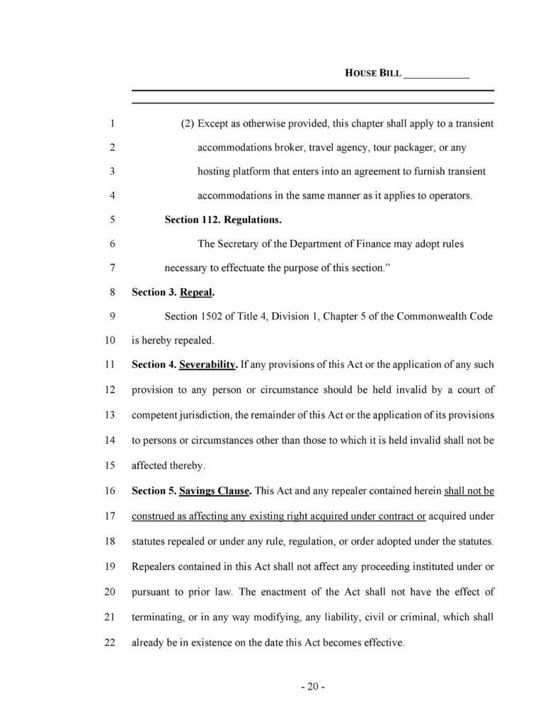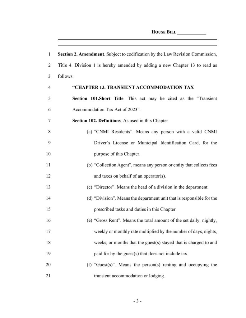 If passed, the legislation would repeal the existing hotel occupancy tax under Title 4, Division 1, Chapter 5 of the Commonwealth Code and replace it with the new framework. It takes effect upon the governor’s approval.