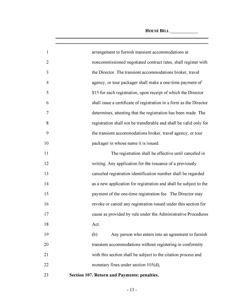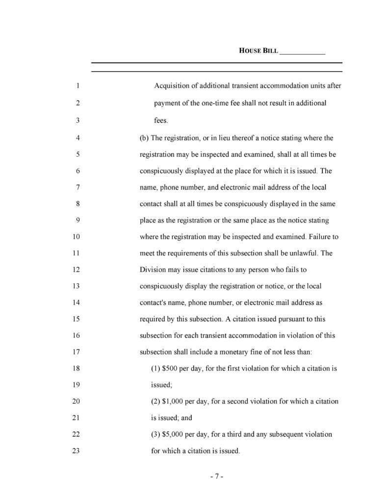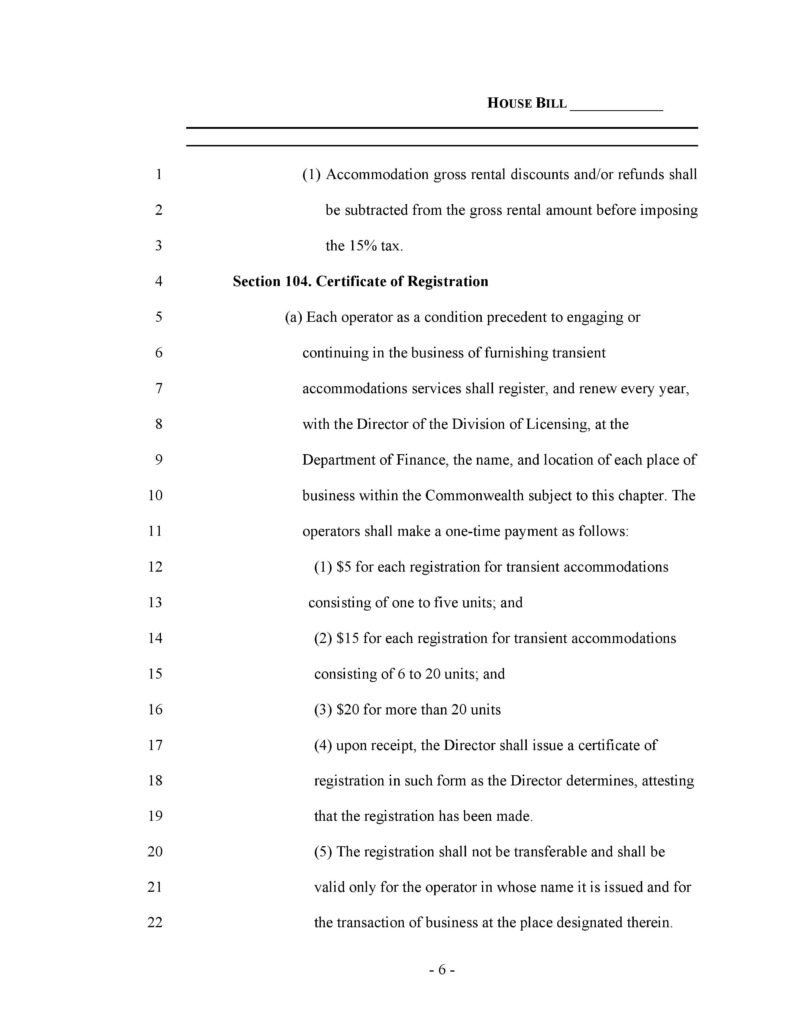 To close that gap, the bill would require all operators to register with the Department of Finance’s Licensing Division before taking in guests. Registration fees are modest, set at $5 for properties with one to five units, $15 for six to 20 units, and $20 for more than 20 units, with no additional fees for acquiring more units after the initial payment.