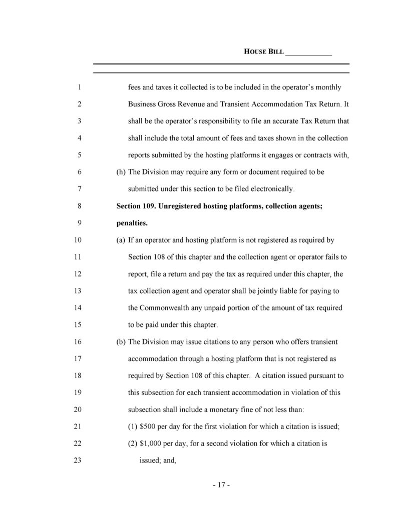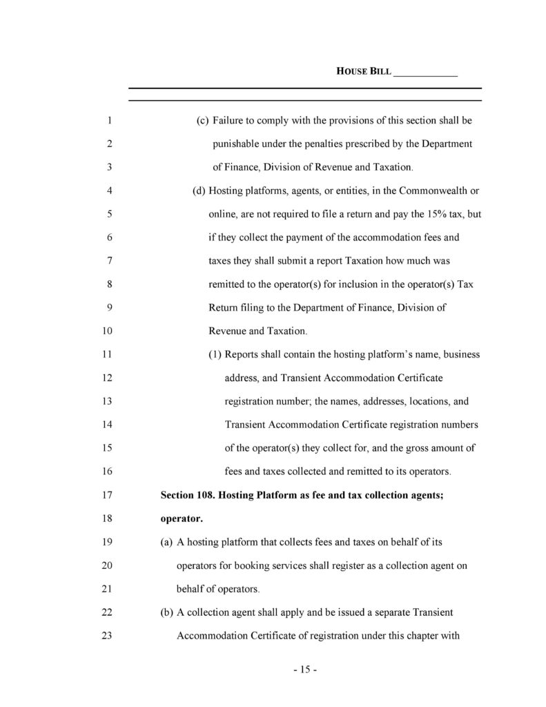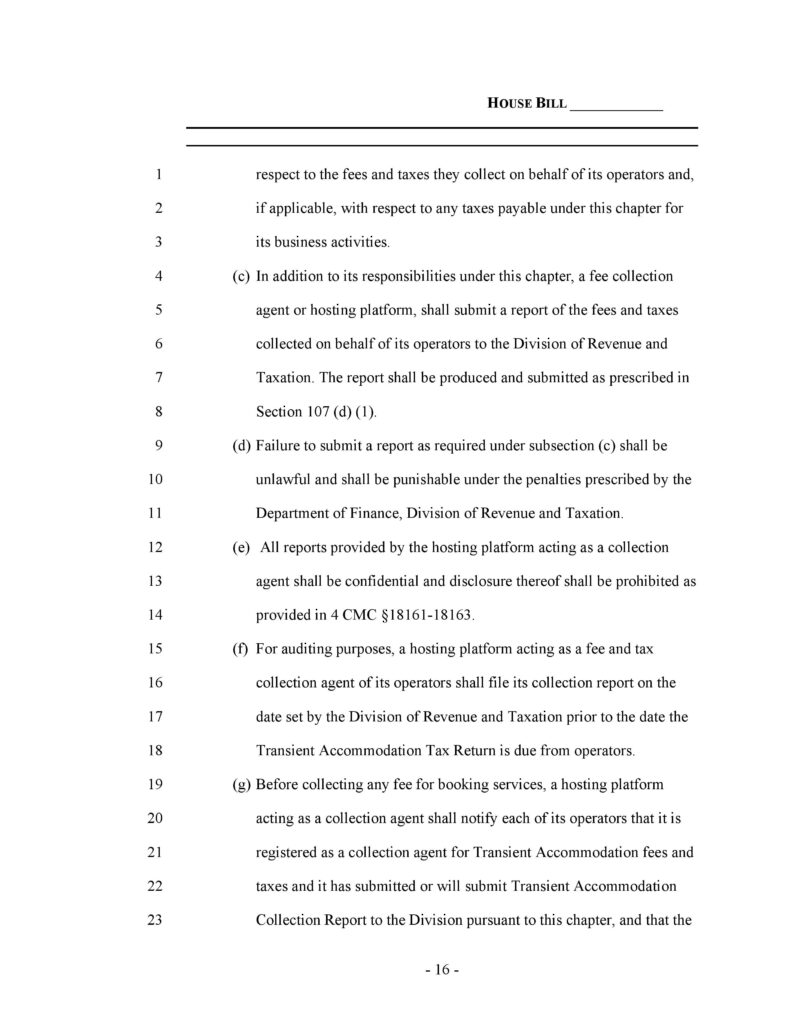 Hosting platforms and online booking services that collect fees on behalf of operators would also be required to register as collection agents and submit reports to the Division of Revenue and Taxation detailing how much was collected and remitted. Platforms that fail to register would be jointly liable with operators for any unpaid taxes.