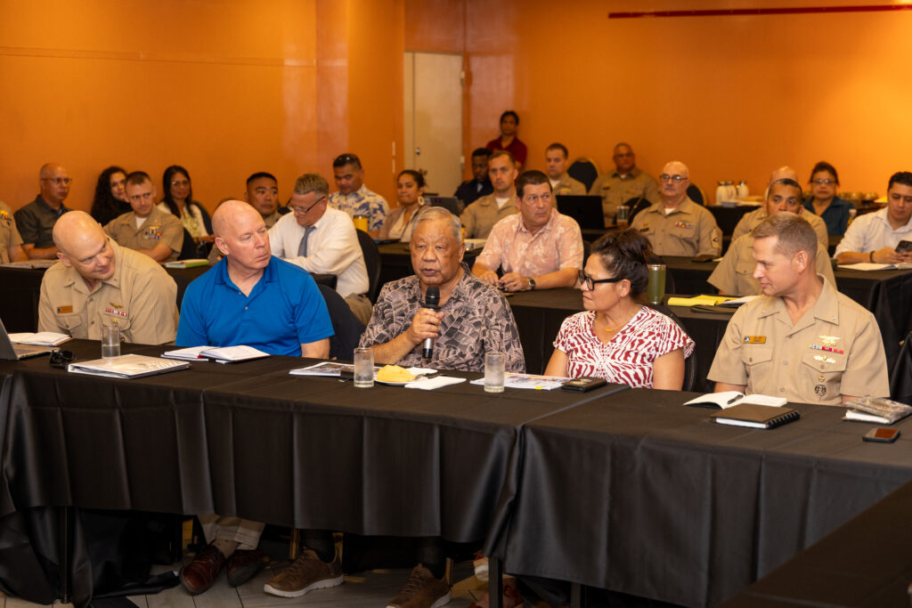 DoW representatives addressed concerns over unexploded ordnance, hazardous materials, and invasive species, and announced upcoming training missions, including an Innovative Readiness Training medical wellness program. They also confirmed the arrival of Navy Seabees on Saipan in August to support ongoing and future projects.