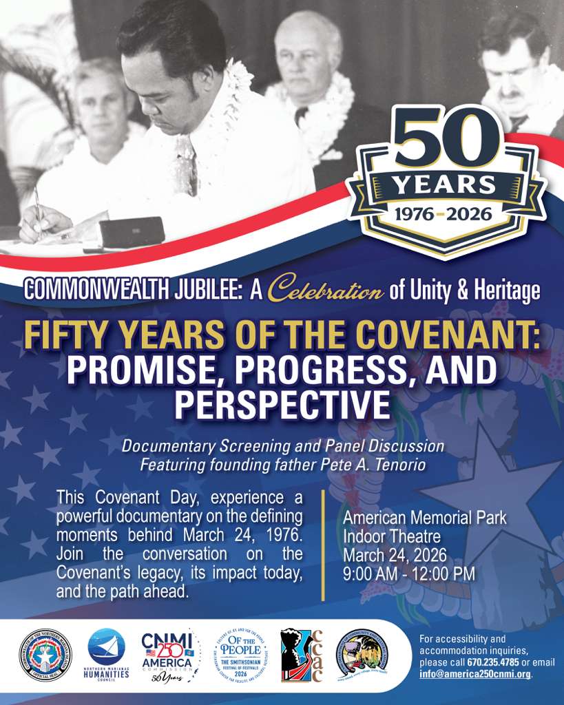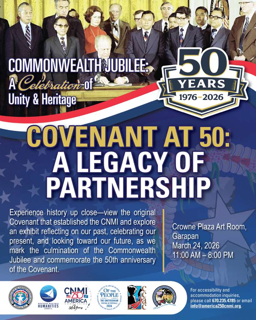 SAIPAN — The Commonwealth of the Northern Mariana Islands marks the 50th anniversary of the Covenant today with a full day of commemorative events, spanning a documentary screening and panel discussion, a historical exhibit and a trivia night, all organized under the banner of Commonwealth Jubilee: A Celebration of Unity and Heritage.