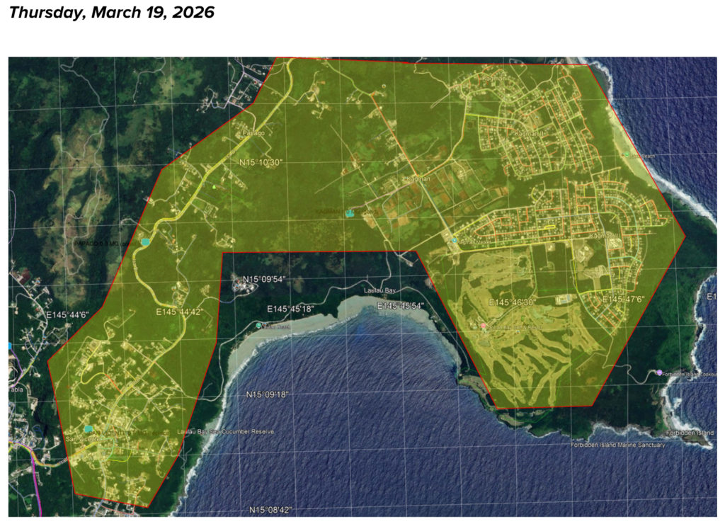 SAIPAN — The Commonwealth Utilities Corporation has announced a scheduled water service interruption for the Papago and Kagman Tank Service Areas on Thursday, March 19, from 8:00 a.m. to 5:00 p.m.
