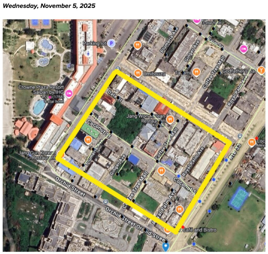 Nov. 5 (Wed): Garapan, 9:00–10:00 a.m. Load transfer work; no wastewater facilities, wells or traffic lights affected.