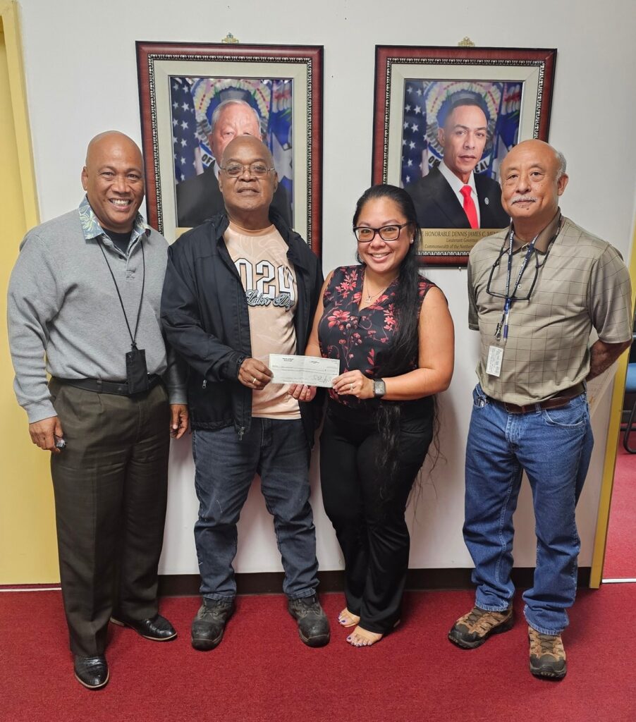 DPL said CNMI Carolinian Affairs official Vince Rabauliman accepted the check from DPL Real Estate Division Acting Director Mai Chong Mendiola, with DPL Secretary Sixto K. Igisomar and Director of Compliance Greg Deleon Guerrero present during the handover.