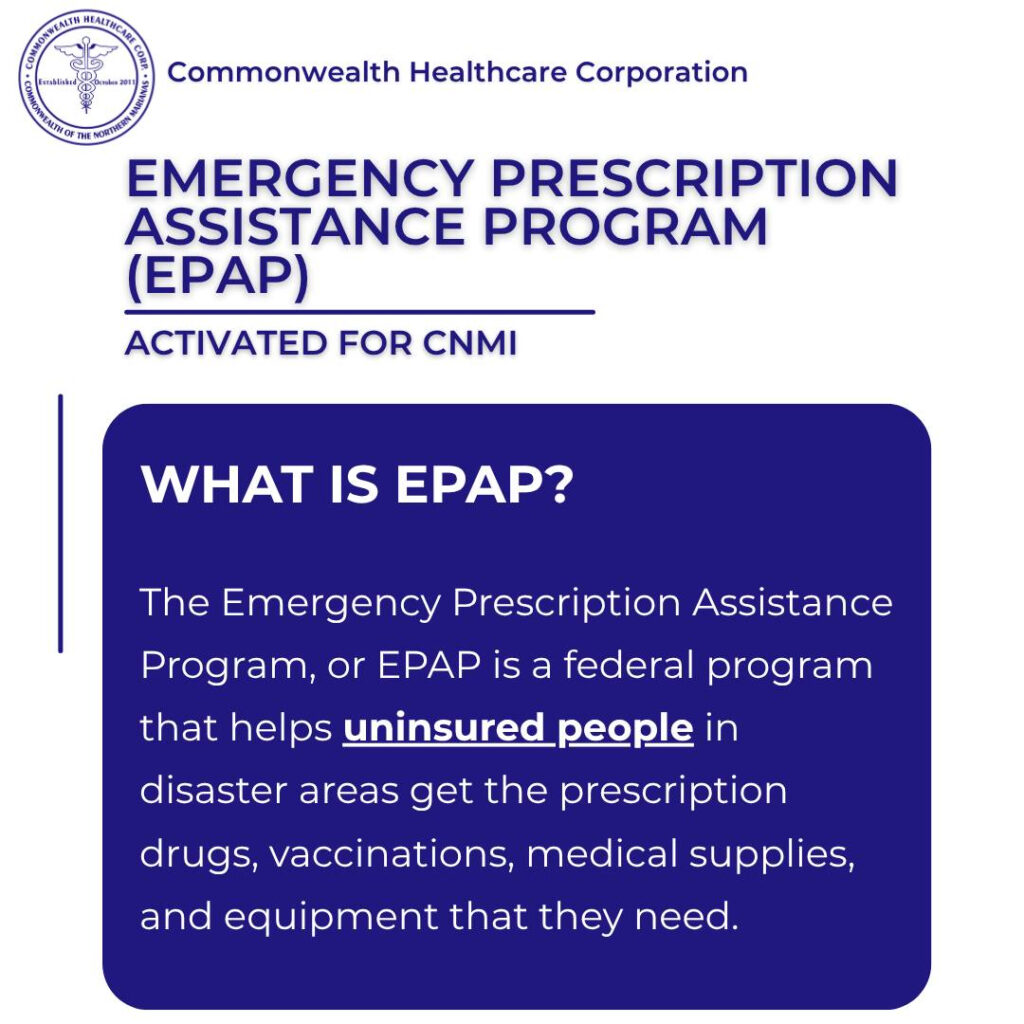 SAIPAN — The Emergency Prescription Assistance Program has been activated for the CNMI following Typhoon Sinlaku, giving uninsured residents access to prescription drugs, vaccinations, medical supplies and equipment at no cost during the disaster period.