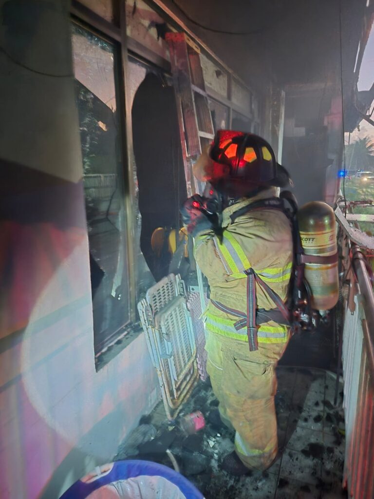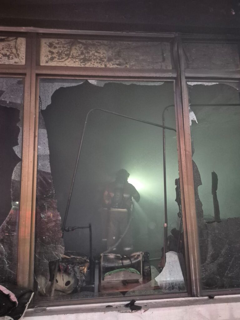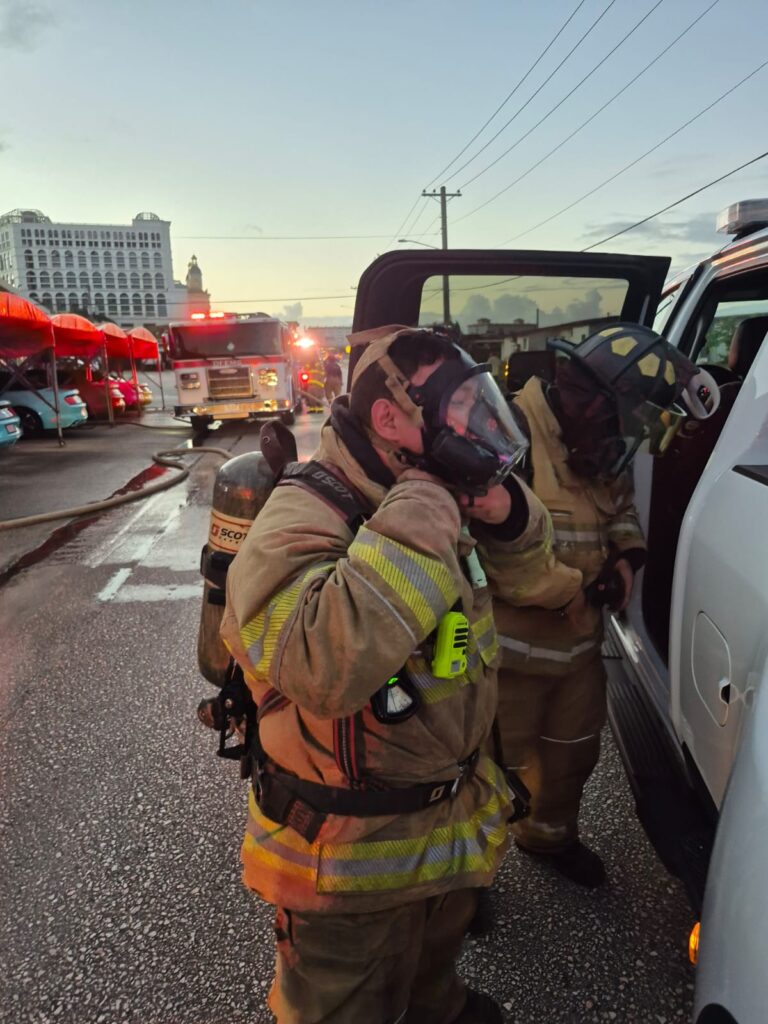 Two teams were deployed to fight the fire. One operated outside, shooting water through a side door to control the spread of the flames, while the second team prepared to enter through the car rental’s main door. At 6:04 p.m., Lieutenant J.J. Concepcion reported to dispatch that the fire was under control.