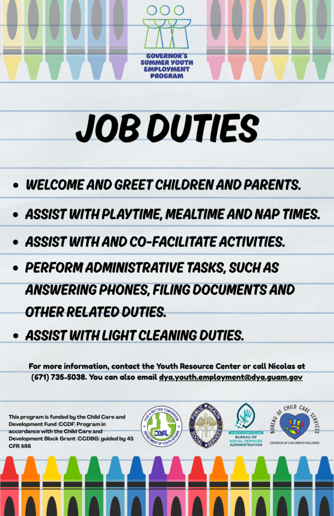 Guam DYA Accepting Applications for Childcare Jobs Under Governor’s Summer Youth Employment Program