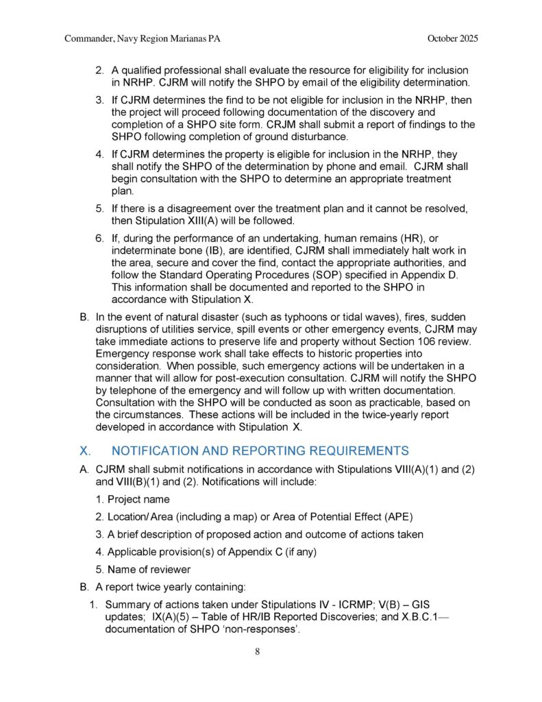 HAGÅTÑA, Guam — The Office of the Governor of Guam is inviting the public to review and comment on a draft Programmatic Agreement outlining how Joint Region Marianas will meet its responsibilities under the National Historic Preservation Act when planning and carrying out Department of Defense projects and activities on DoD lands on Guam.