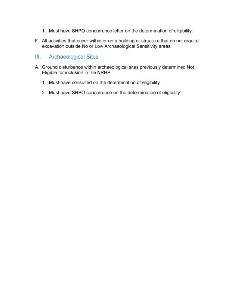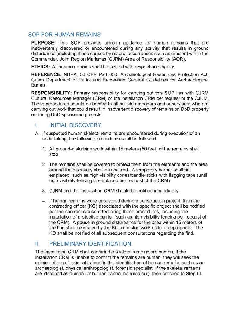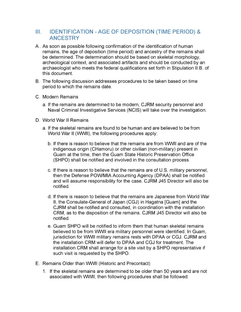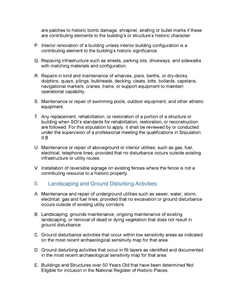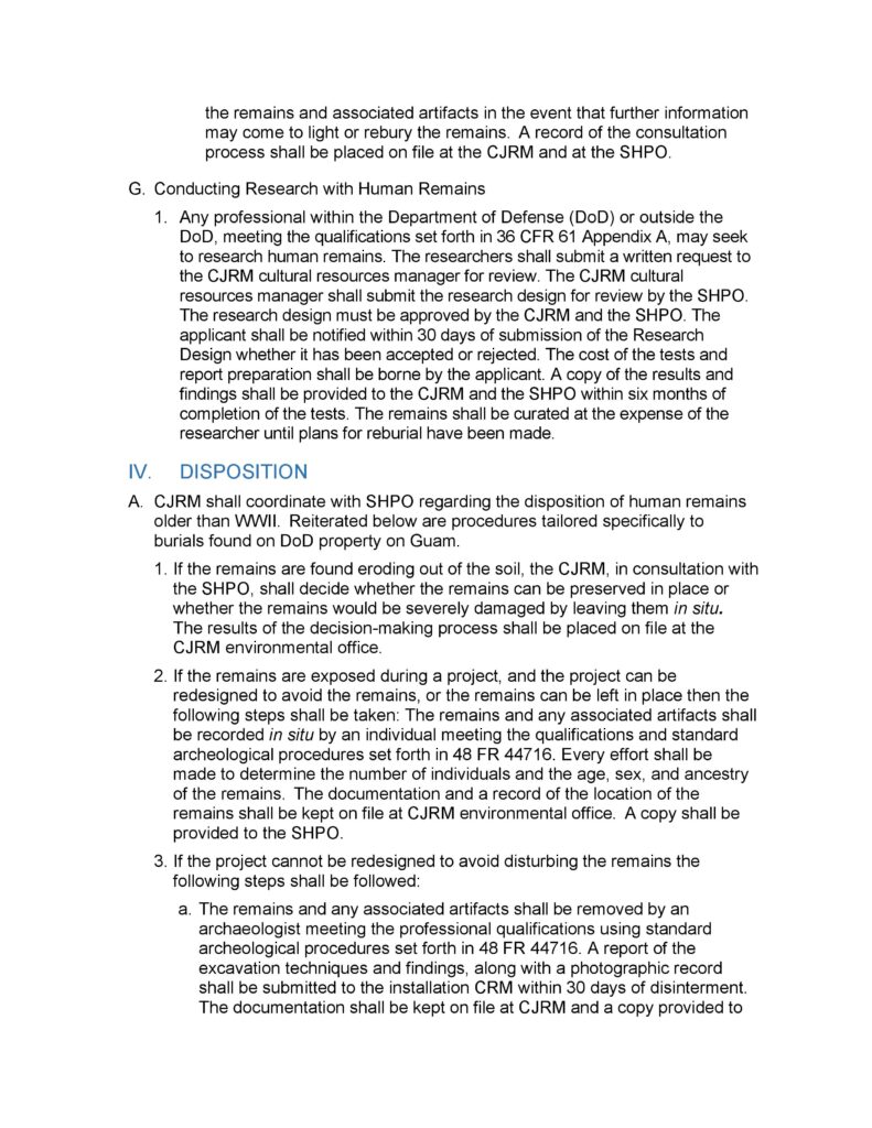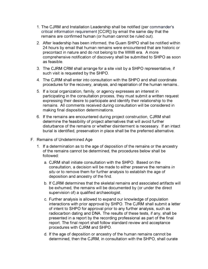 The draft also includes procedures tied to archaeological review, treatment of historic buildings and structures, inadvertent discoveries, and human remains, and calls for tools and processes such as archaeological sensitivity maps, public access planning for culturally important sites on DoD lands, and regular reporting and consultation with the SHPO.