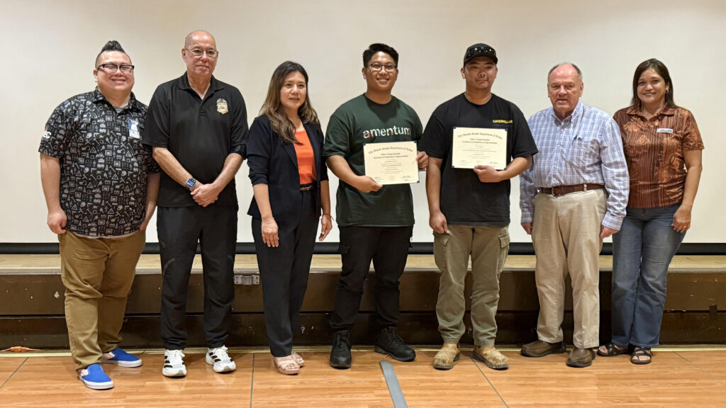 HAGÅTÑA, Guam — Two new graduates of Guam’s Registered Apprenticeship program were recognized this month as the Guam Contractors Association, in partnership with the Guam Department of Labor, highlighted their completion of skilled trade training in HVAC and heavy equipment mechanics.