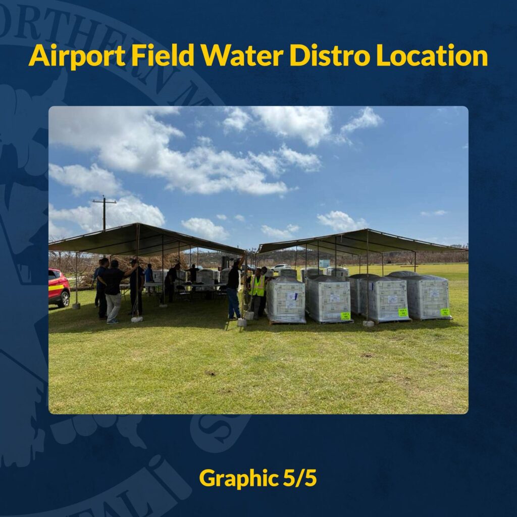SAIPAN — HSEM and FEMA will distribute bottled drinking water to Saipan residents at the Airport Field beginning Thursday, April 23 from 9:00 a.m. to noon, or until supplies last, according to JIC Update 009 issued Tuesday.