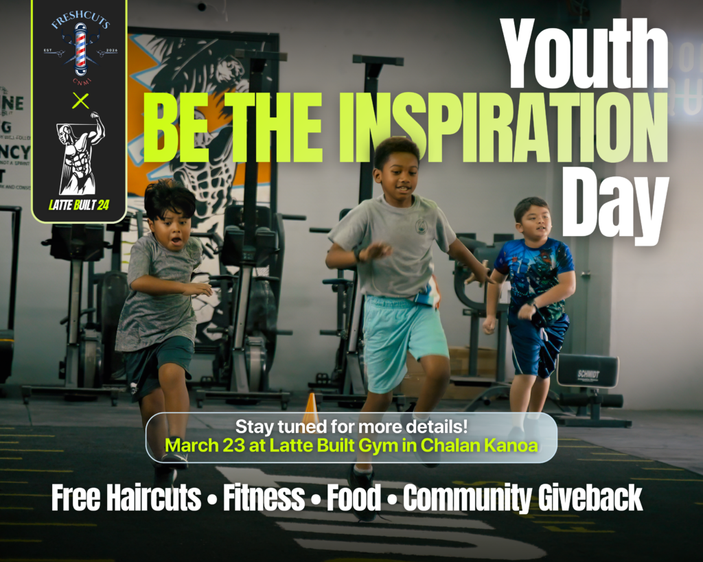Latte Built 24hr Fitness and Fresh Cuts CNMI have partnered to host Youth “Be The Inspiration” Day on Monday, March 23, at Latte Built Gym in Chalan Kanoa. The event will offer free haircuts, fitness activities, food and community giveback opportunities for young people across the island.