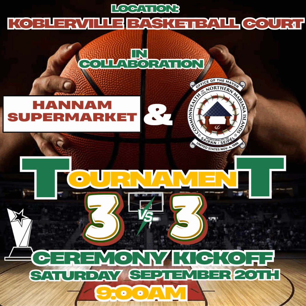 SAIPAN – The Saipan Mayor’s Office and Adopt-A-Place partner Hannam Supermarket invite the public to the first-ever 3-on-3 Youth Basketball Tournament at Koblerville Basketball Court on Saturday, September 20 at 9:00 a.m.