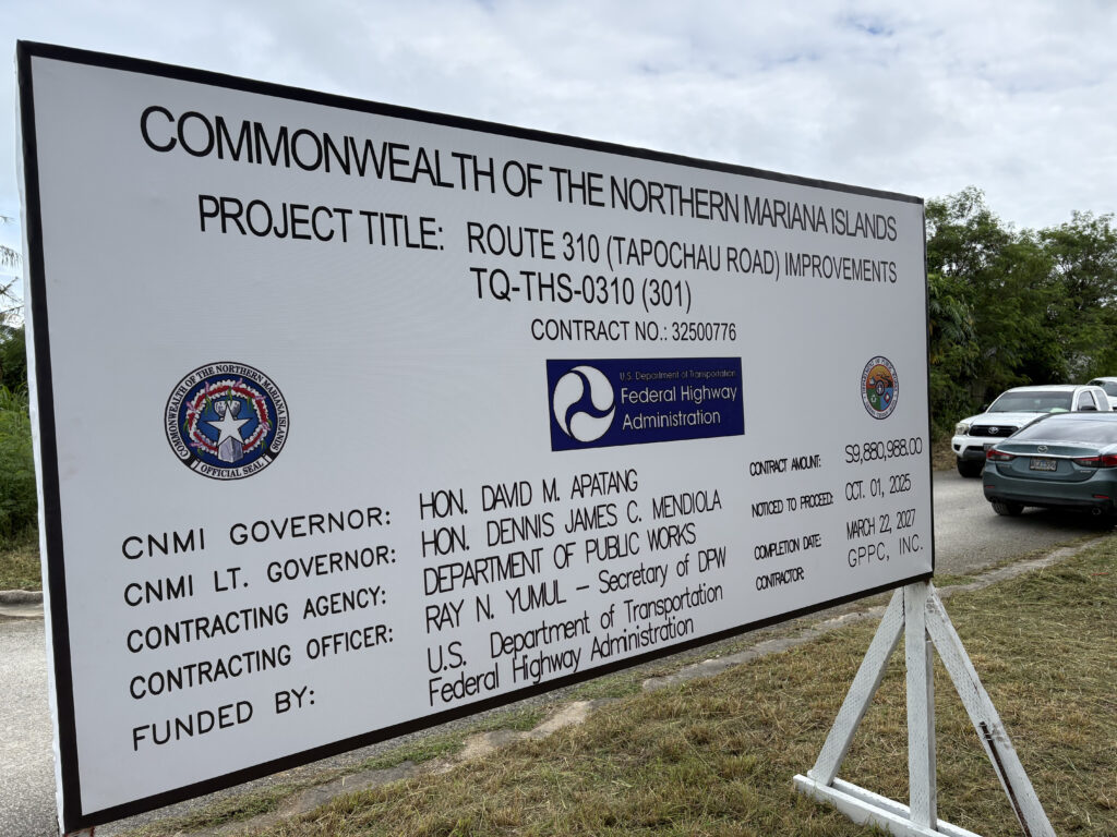 SAIPAN — The Commonwealth broke ground Tuesday on the full realignment and reconstruction of Route 310 (Mount Tapochau Road), a 2.1-mile project funded by the U.S. Department of Transportation’s Federal Highway Administration. The $9,880,998 contract was awarded to GPPC, with a notice to proceed issued October 1 and a target completion date of March 22, 2027 (360 working days).