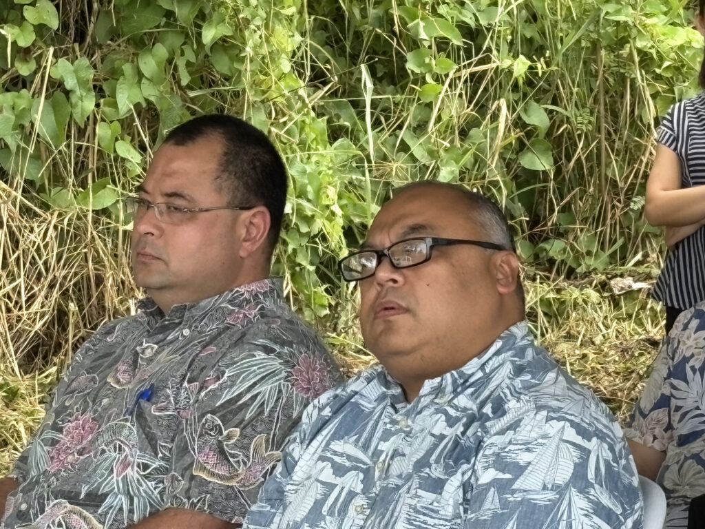 The ceremony drew a large turnout from the administration and legislature, including Reps. B.J. Attao, J.P. Sablan, Ralph Yumul, Joe Flores, Angelo Camacho, and agency heads from Department of Lands and Natural Resources, Department of Public Safety, Department of Corrections and others.