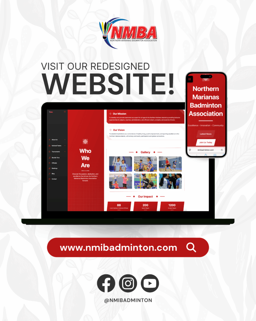 The new site, now live at nmibadminton.com, provides clearer navigation and detailed sections on NMBA’s national teams, tournaments, programs, and facilities. Visitors will also find highlights of the association’s achievements and resources supporting year-round player development.
