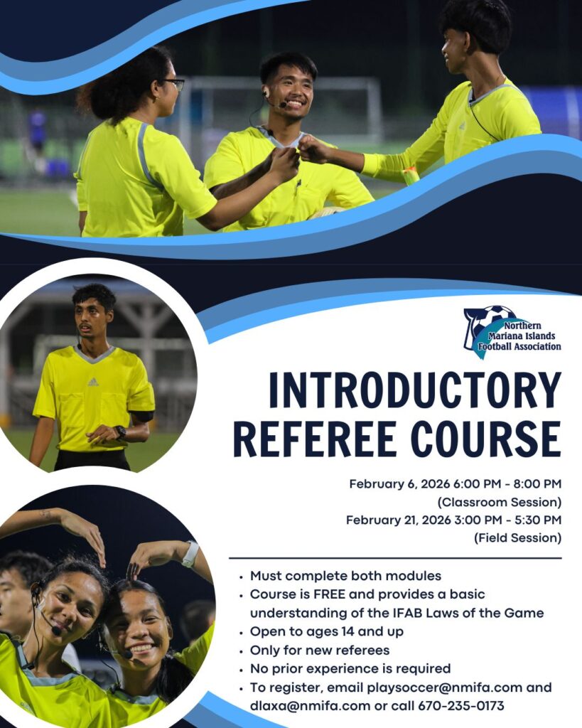 SAIPAN — Northern Mariana Islands Football Association is offering a free “Introductory Referee Course” in February, with both a classroom session and a field session required to complete the program.