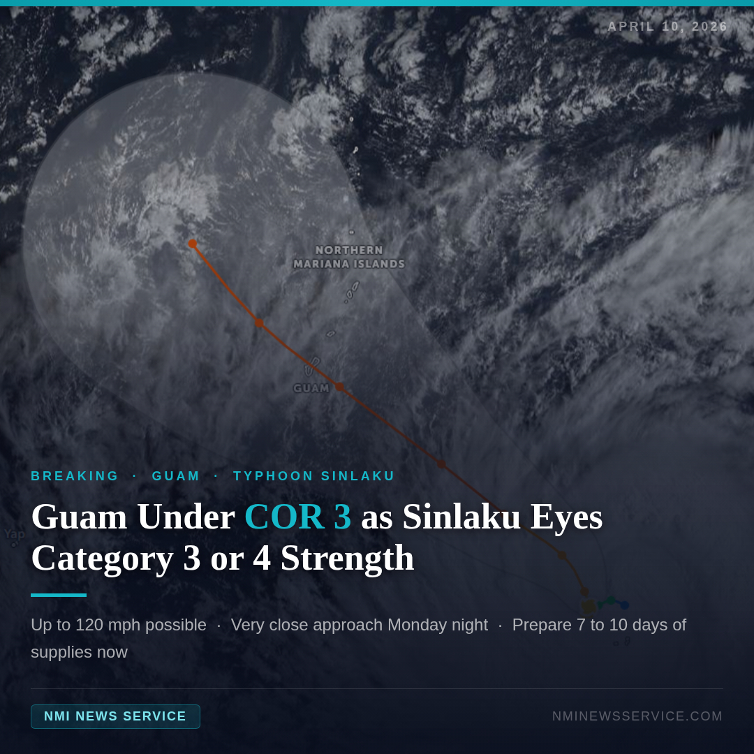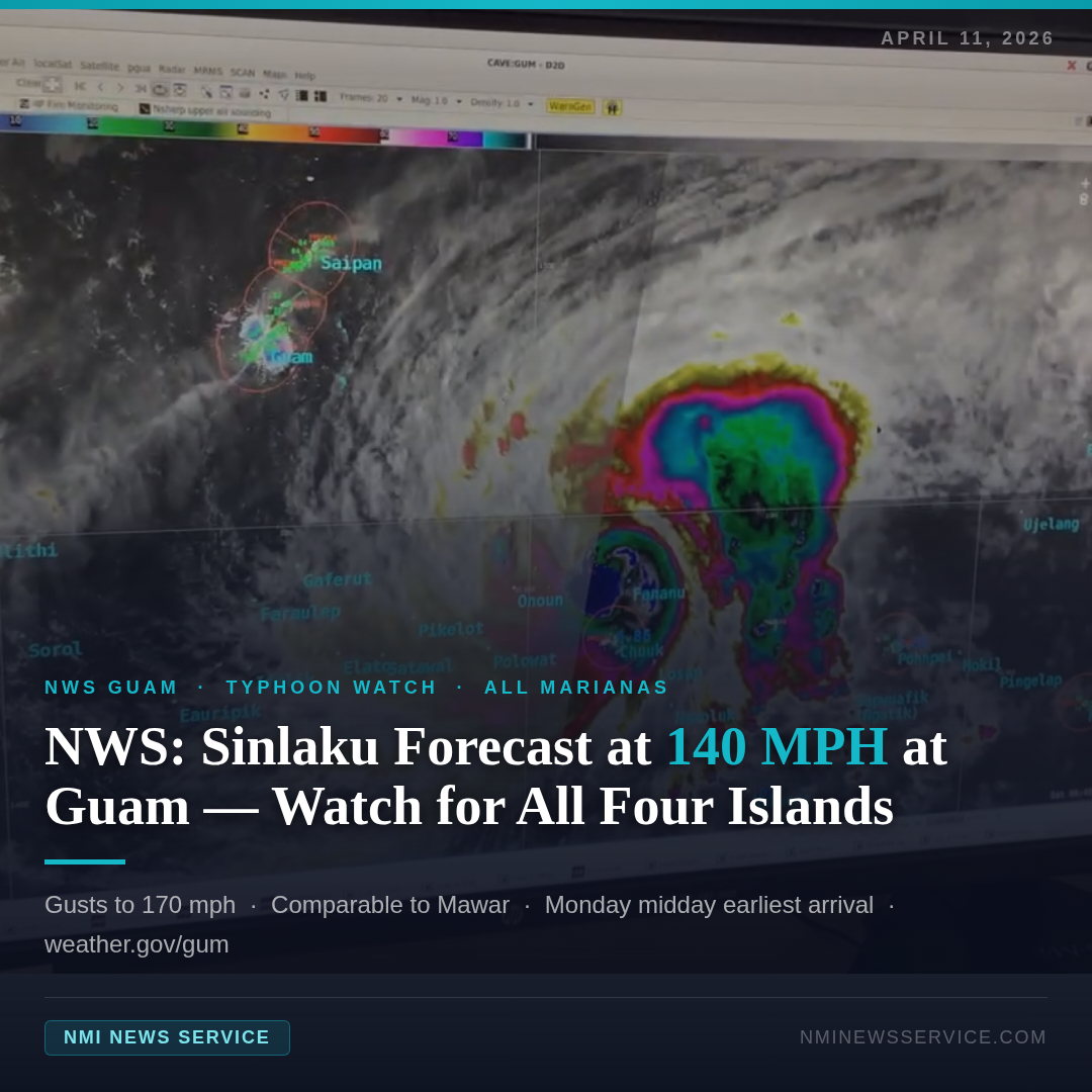 NWS: Typhoon Sinlaku Forecast at 140 MPH at Guam Landfall; Watch Covers All Four Marianas Islands