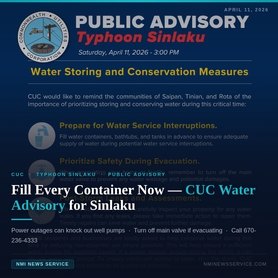 CUC: Power and Water Staying On; Rota Under Boil Water Notice Ahead of Sinlaku