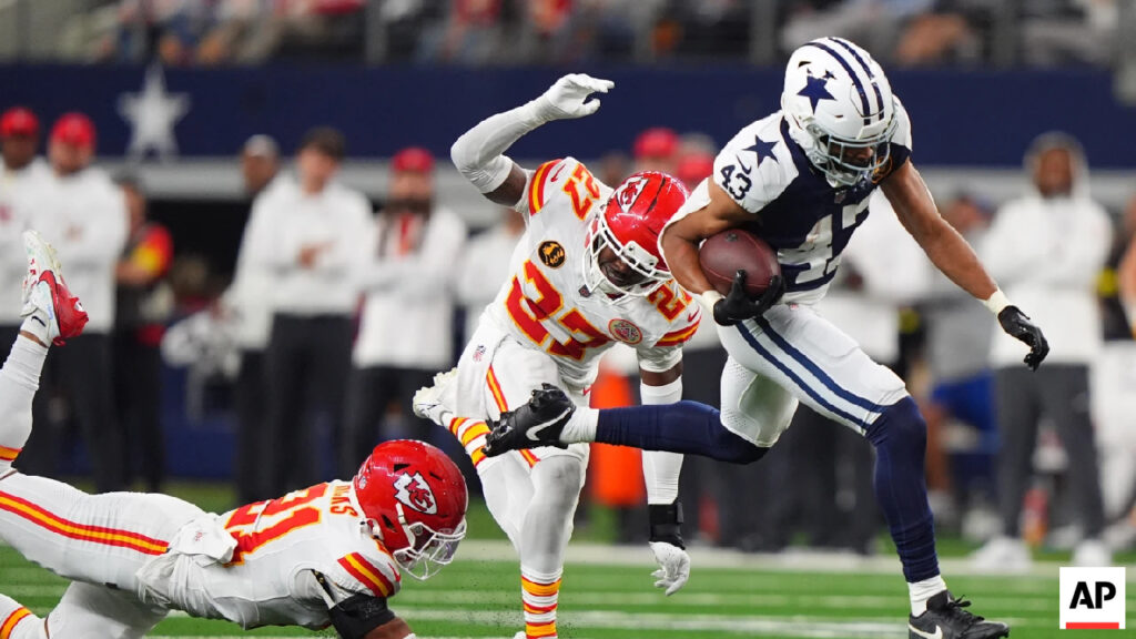 ARLINGTON, Texas (AP) — Dak Prescott threw for two touchdowns, Malik Davis sprinted 43 yards for a score and the Dallas Cowboys overcame two fourth down TD throws from Patrick Mahomes in a 31-28 Thanksgiving victory over the Kansas City Chiefs on Thursday.