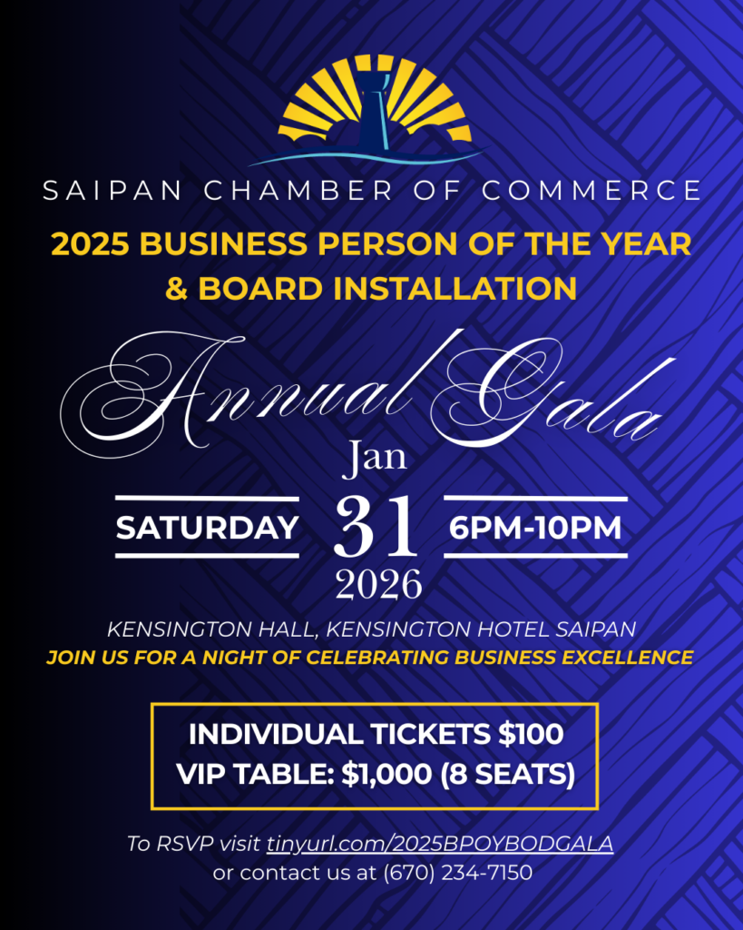 SAIPAN — The Saipan Chamber of Commerce will host its 2025 Business Person of the Year (BPOY) & Board of Directors Installation Gala on Saturday, Jan. 31 at Kensington Hotel Saipan.