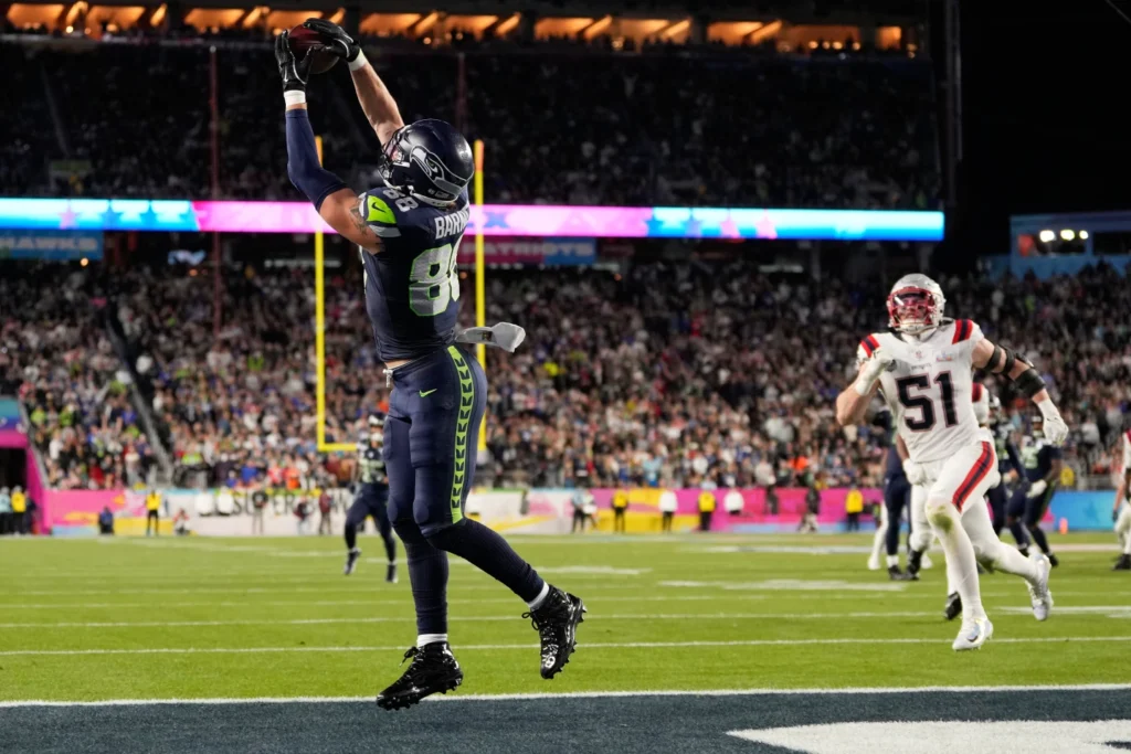 Darnold threw a touchdown pass to AJ Barner, Kenneth Walker III ran for 135 yards and Jason Myers set a Super Bowl record by making all five of his field-goal tries.