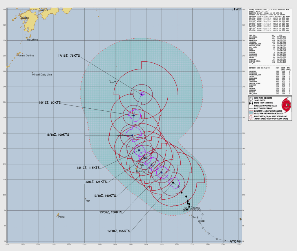 SAIPAN — Super Typhoon Sinlaku reached maximum sustained winds of 180 mph Monday morning and remains on a track forecast to bring the storm center near or over Tinian and Saipan, according to HSEM Bulletin 9 issued at 8 a.m.