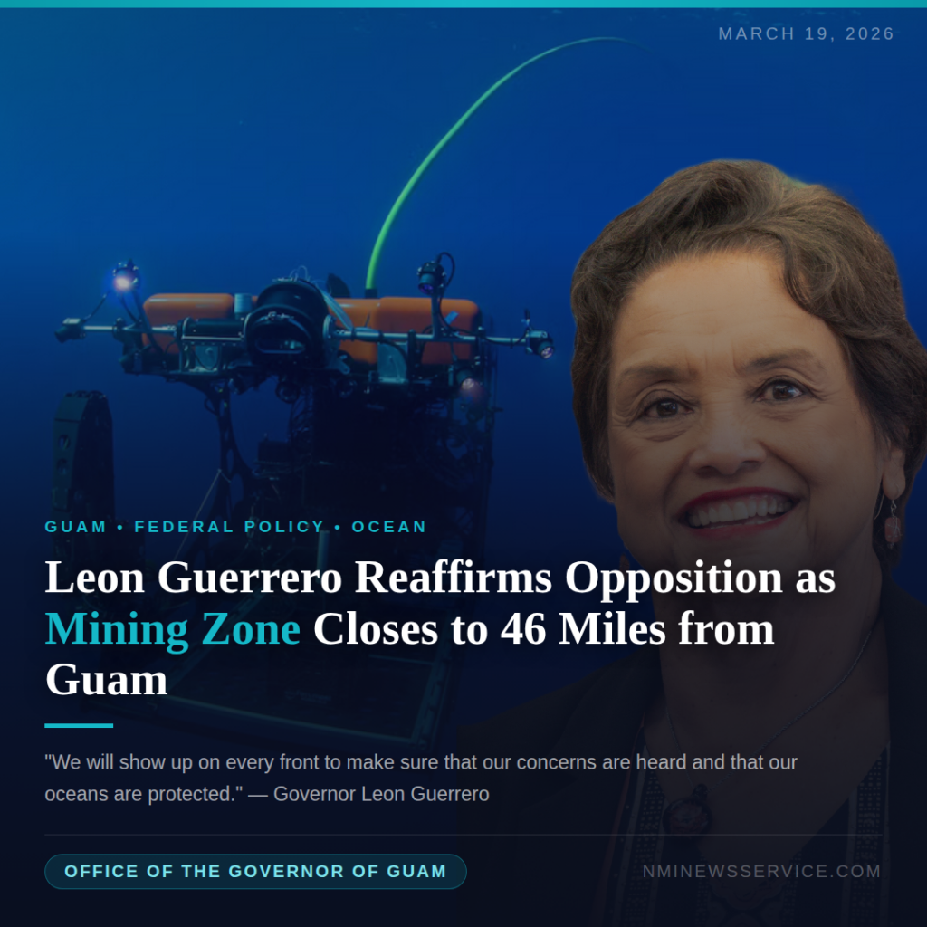 HAGÅTÑA — Guam Governor Lourdes A. Leon Guerrero and Lieutenant Governor Joshua F. Tenorio are reaffirming their opposition to the Bureau of Ocean Energy Management’s deep-sea mining proposal after the agency announced it was effectively doubling the potential lease area to include seabed west of the Marianas archipelago — bringing the mining zone as close as 46 miles from Guam’s shores.