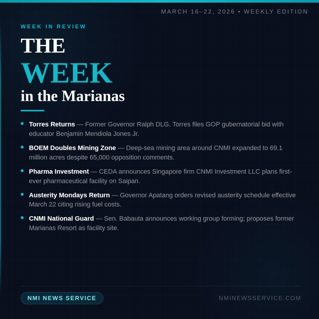 Hagåtña, Guam — Acting Governor Joshua F. Tenorio said Thursday that Guam strongly opposes proposals to accelerate permitting for undersea mineral exploration in waters surrounding the Marianas, telling visiting federal officials the island is not interested in serving as a test case for rushed policy decisions.