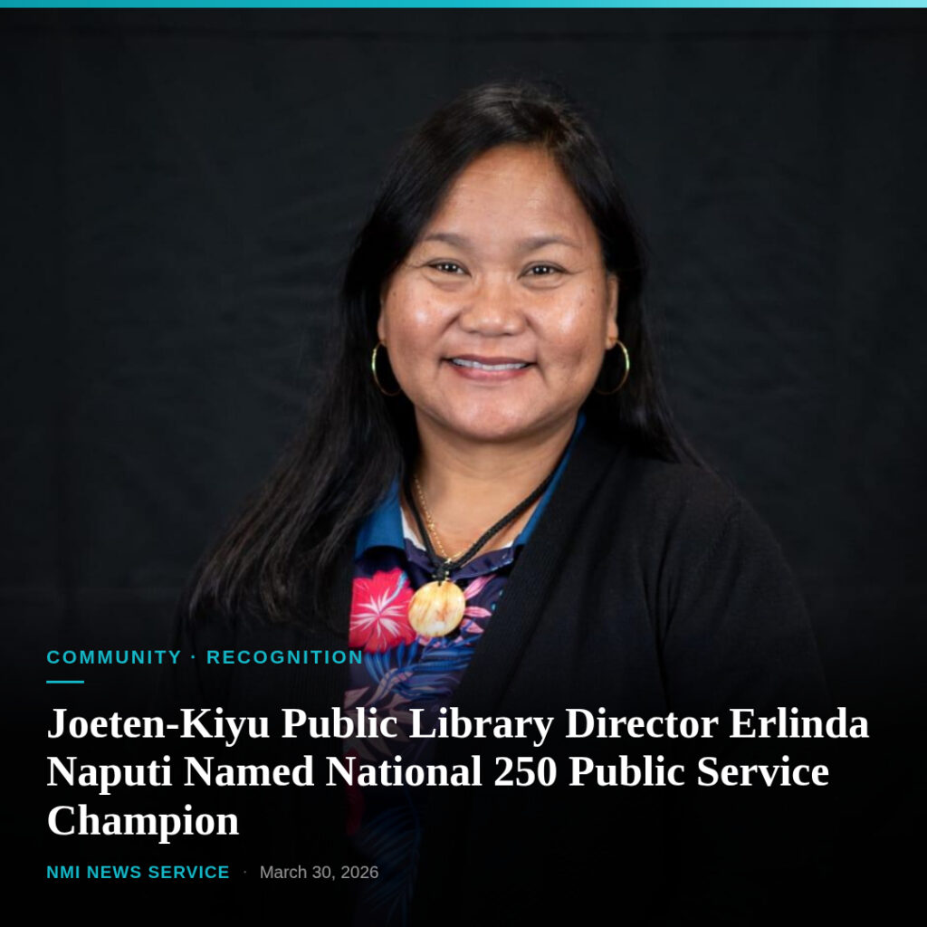 SAIPAN — Joeten-Kiyu Public Library Director Erlinda C. Naputi has been selected as one of 250 Public Service Champions nationally, an honor awarded by the National Academy of Public Administration in partnership with LocalGov250.