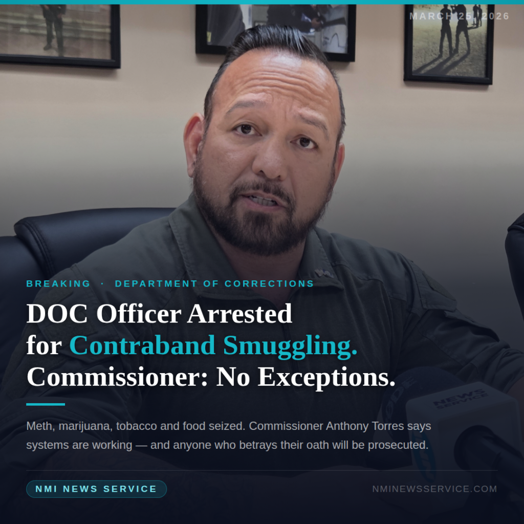 SAIPAN — A corrections officer and a female suspect were arrested Tuesday evening after Department of Corrections staff, working with the Department of Public Safety, intercepted an attempt to smuggle methamphetamine, marijuana, tobacco, lighters, food and sodas into the DOC facility, Commissioner Anthony Torres announced at a press conference Wednesday afternoon.