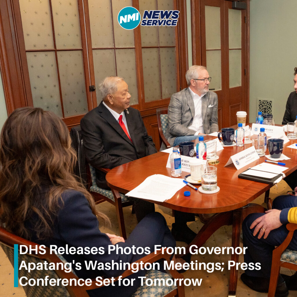 SAIPAN — The U.S. Department of Homeland Security has released photos from Governor David M. Apatang’s recent meetings in Washington, D.C., showing the governor alongside DHS Secretary Kristi Noem, U.S. Coast Guard Commandant Admiral Kevin E. Lunday, and Washington lobbyist Jason Osborne.