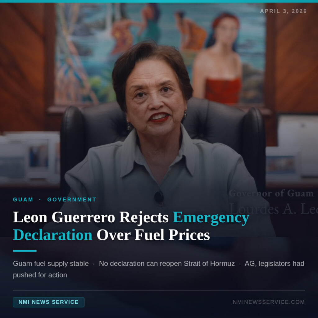 HAGÅTÑA — Governor Lourdes A. Leon Guerrero pushed back Friday against calls from legislators and the attorney general to declare a state of emergency over rising fuel prices, saying Guam’s fuel supply remains stable and that no emergency declaration can address the underlying cause of global oil price increases.