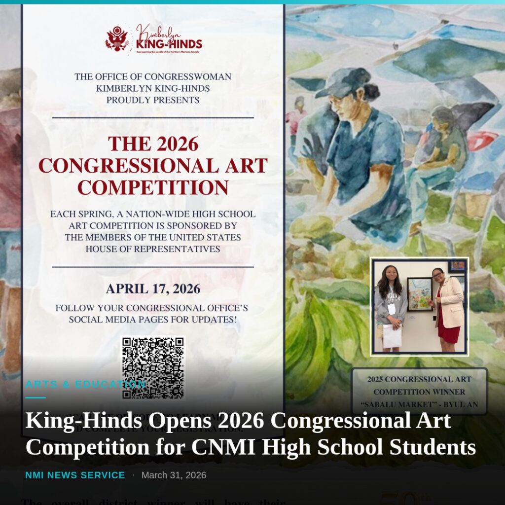 SAIPAN — Congresswoman Kimberlyn King-Hinds has announced the 2026 Congressional Art Competition for high school students in the Northern Mariana Islands, with submissions due April 17.