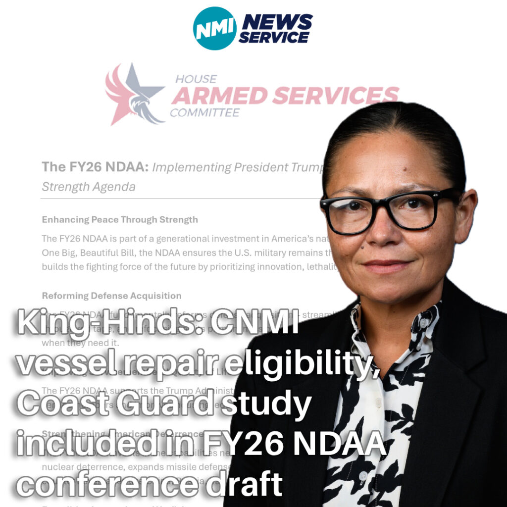WASHINGTON — CNMI Delegate Kimberlyn King-Hinds announced that the conference committee draft of the Fiscal Year 2026 National Defense Authorization Act (NDAA) includes two major CNMI provisions, placing them in the negotiated text that will move to the House and Senate for final approval.