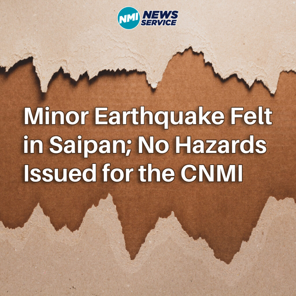 SAIPAN — The CNMI Office of Homeland Security and Emergency Management said community members reported feeling a small local earthquake with a couple of jolts around 3:30 p.m. Friday, and the U.S. Geological Survey recorded about four seconds of seismic activity. HSEM said no hazards or tsunami threats have been issued for the CNMI, and the CNMI State Warning Point will continue monitoring and provide updates as available.