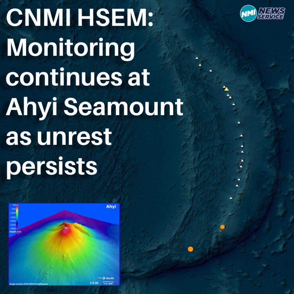 SAIPAN — The Commonwealth Office of Homeland Security and Emergency Management (HSEM) is maintaining heightened watch over Ahyi Seamount after partner agencies noted renewed signs of submarine unrest. The volcano’s status remains at Advisory with an Aviation Color Code of Yellow, indicating activity above background that does not currently pose a hazard to aviation.