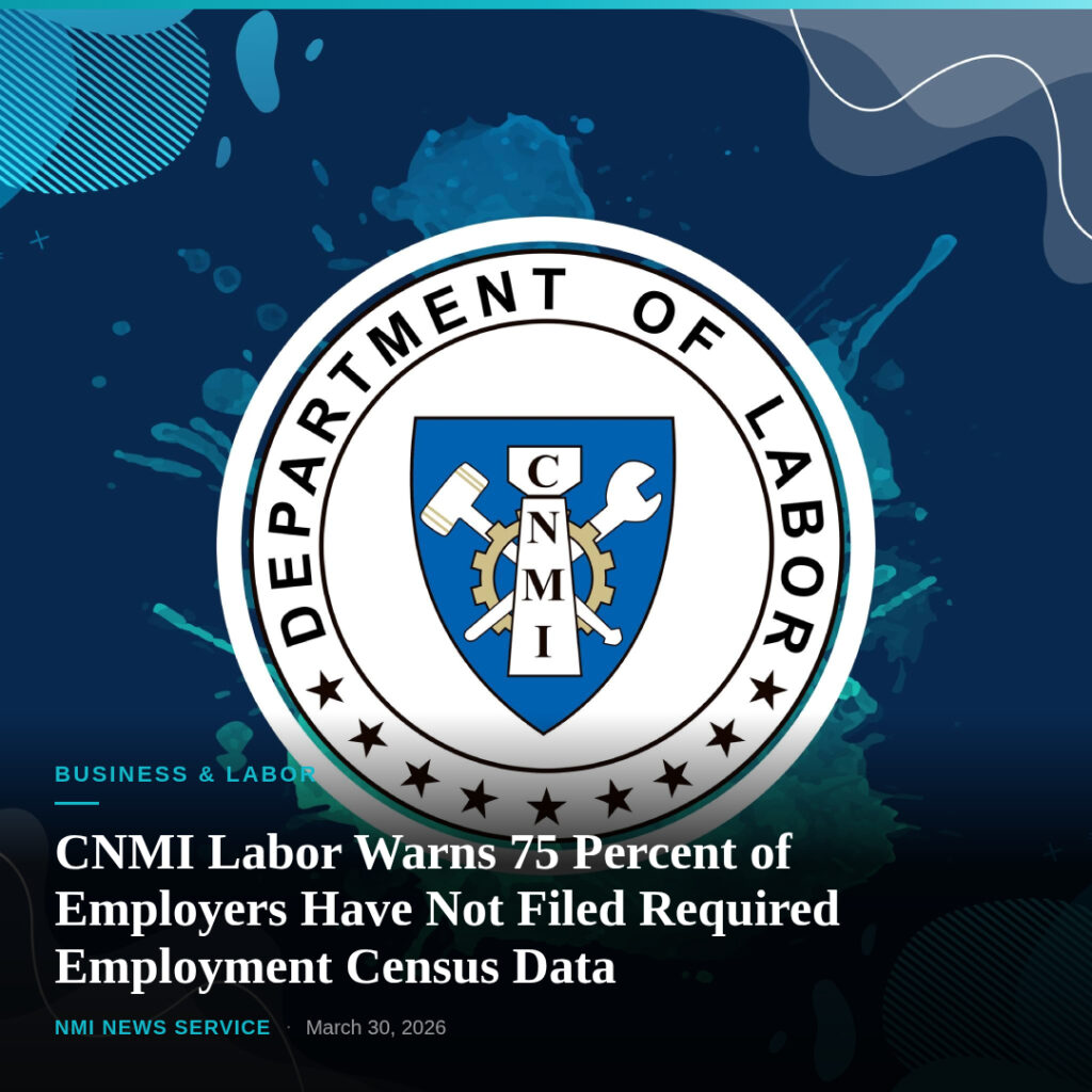SAIPAN — The CNMI Department of Labor is warning that roughly three-quarters of employers have not yet submitted required Census of Employment data, and is urging all businesses and organizations to file their first quarter 2025 reports before the April 30 deadline.