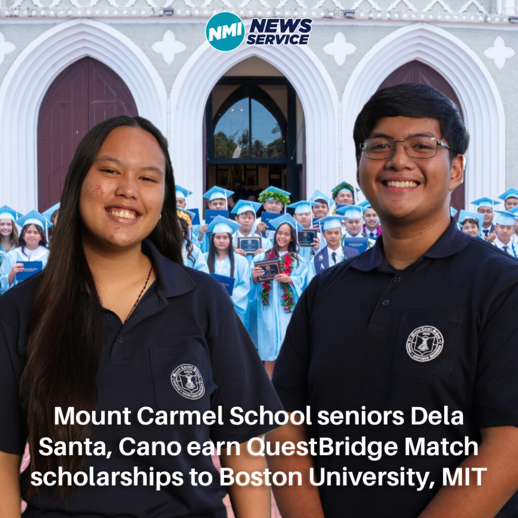 SAIPAN — Mount Carmel School said two of its seniors, Heleyna Frielle Cruz Dela Santa and William Matthew Bongabong Cano, have been selected as QuestBridge National College Match Scholarship recipients, earning full four-year scholarships to partner universities.