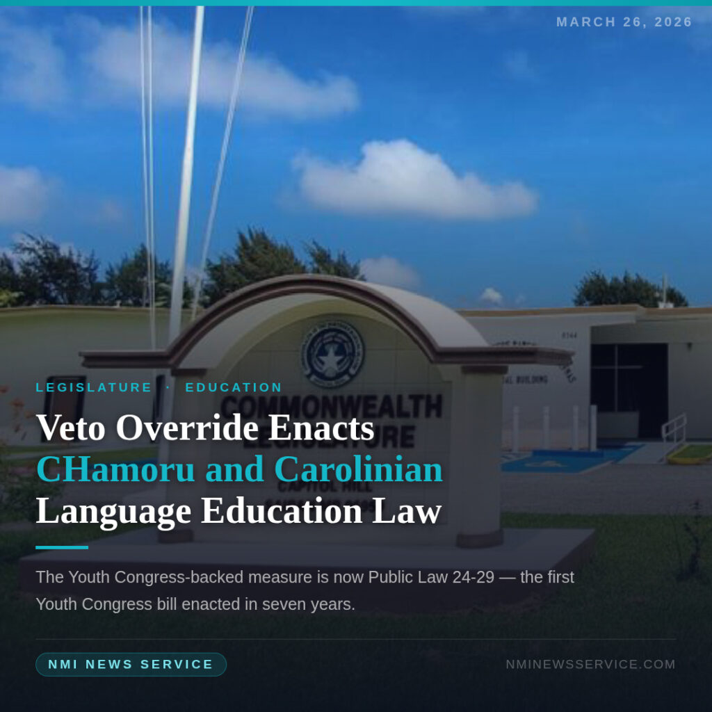 SAIPAN — The CNMI Legislature has unanimously overridden Governor David M. Apatang’s veto of Senate Bill 24-04, enacting it into law as Public Law 24-29 and advancing a measure that strengthens Chamorro and Carolinian language education in the Commonwealth’s public schools.