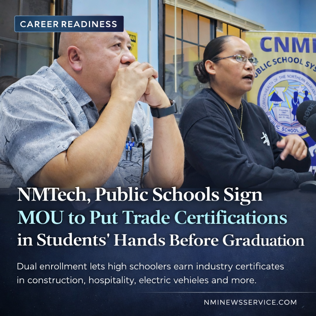 SAIPAN — The Northern Marianas Technical Institute and the CNMI Public School System have formalized a partnership that will allow high school students across the Commonwealth to earn industry-recognized trade certifications before they receive their diplomas.