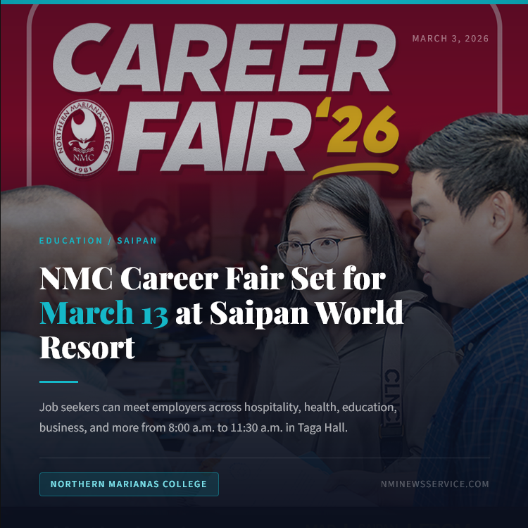SAIPAN — Northern Marianas College is encouraging local employers, government agencies, and business organizations to register for its upcoming Career Fair scheduled for Friday, March 13, offering an opportunity to connect with students, recent graduates, and community members seeking jobs.