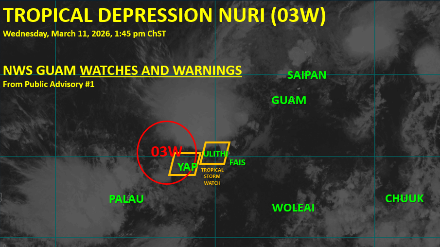 NWS Guam is issuing public advisories on Nuri every three hours due to the active Tropical Storm Watch for Yap Proper and Ulithi. Residents across Yap State, Guam and the CNMI are urged to stay current with forecasts from NWS Guam, WSO Yap and local emergency management.