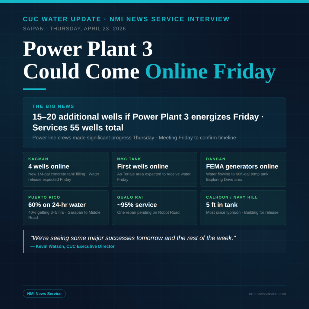 CUC Executive Director: Power Plant 3 Could Come Online Friday, Adding Up to 20 Wells; Major Water Wins Across Saipan Thursday