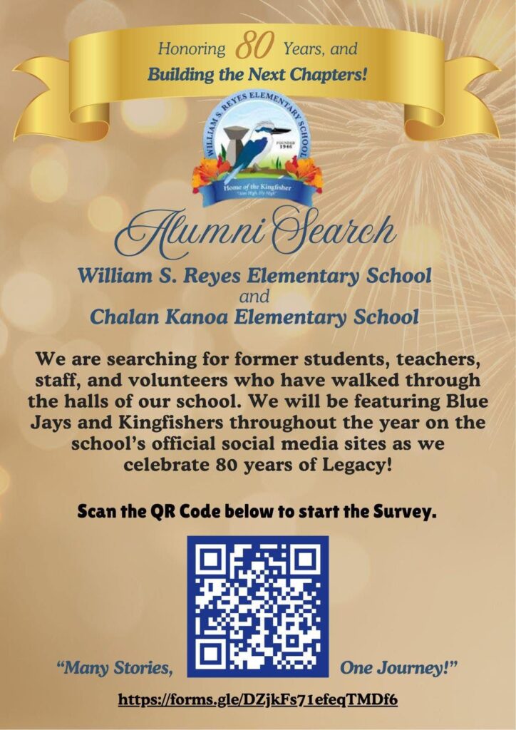 SAIPAN — William S. Reyes Elementary School has launched an alumni search as it prepares to celebrate 80 years, calling on former students, teachers, staff, and volunteers from both William S. Reyes Elementary School and Chalan Kanoa Elementary School to take part.